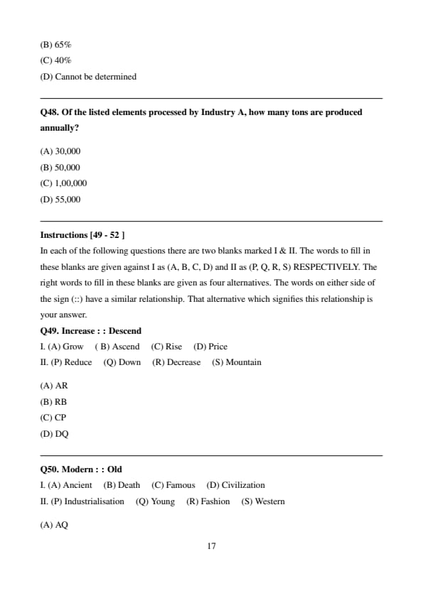 II. (P) Industrialisation (Q) Young (R) Fashion (S) Western