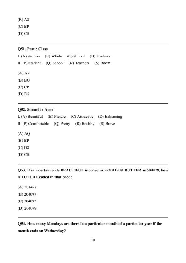 II. (P) Comfortable (Q) Pretty (R) Healthy (S) Brave