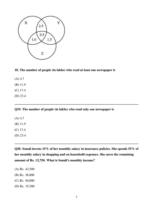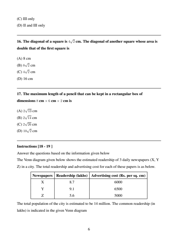 Answer the questions based on the information given below The Venn diagram given below shows the estimated readership of 3 daily newspapers (X, Y, Z) in a city. The total readership and advertising cost for each of these papers is as below.