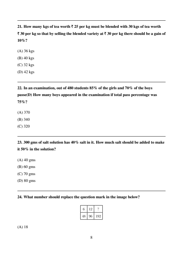 How many kgs of tea worth Rs.~25 per kg must be blended with 30 kgs of tea worth Rs.~30 per kg so that by selling the blended variety at Rs.~30 per kg there should be a gain of 10%?