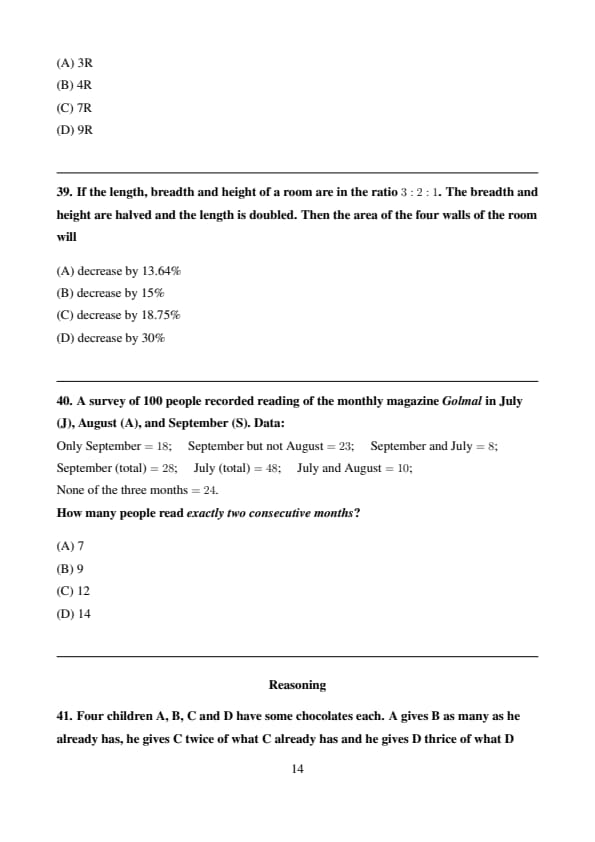 A survey of 100 people recorded reading of the monthly magazine \emph{Golmal} in July (J), August (A), and September (S). Data: