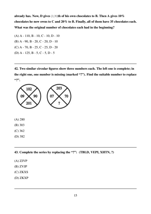 Then A gives 10% chocolates he now owns to C and 20% to B.