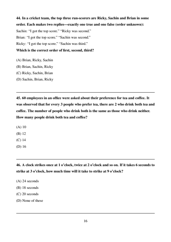 In a cricket team, the top three run-scorers are Ricky, Sachin and Brian in some order. Each makes two replies—exactly one true and one false (order unknown):