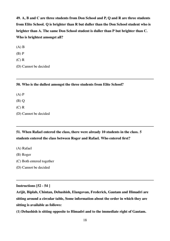 A, B and C are three students from Don School and P, Q and R are three students from Elite School. Q is brighter than R but duller than the Don School student who is brighter than A. The same Don School student is duller than P but brighter than C. Who is brightest amongst all?