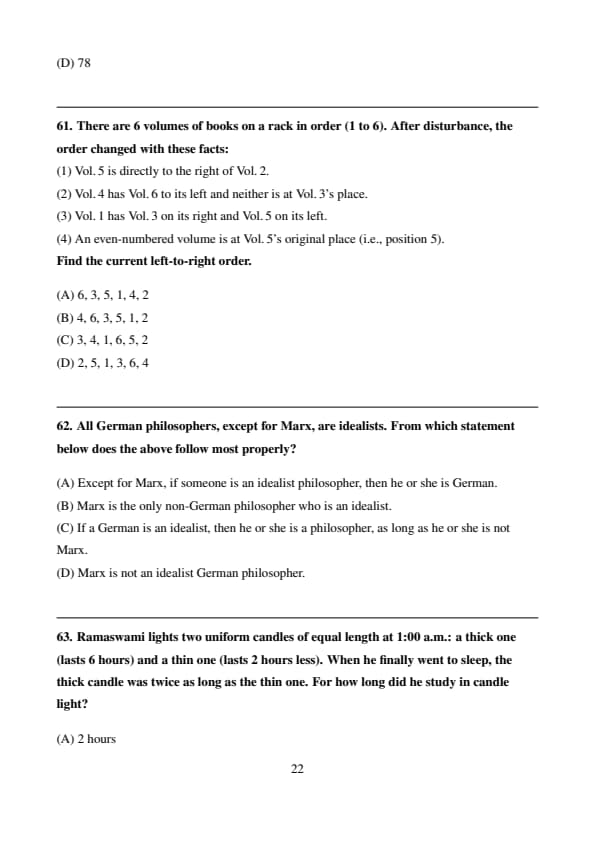 There are 6 volumes of books on a rack in order (1 to 6). After disturbance, the order changed with these facts: