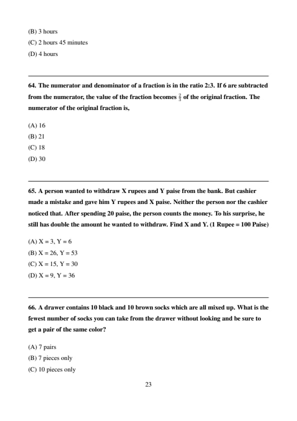 The numerator and denominator of a fraction is in the ratio 2:3. If 6 are subtracted from the numerator, the value of the fraction becomes \(\frac{2}{3}\) of the original fraction. The numerator of the original fraction is,