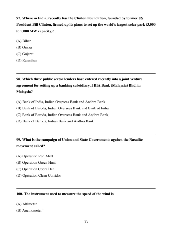 Where in India, recently has the Clinton Foundation, founded by former US President Bill Clinton, firmed up its plans to set up the world's largest solar park (3,000 to 5,000 MW capacity)?