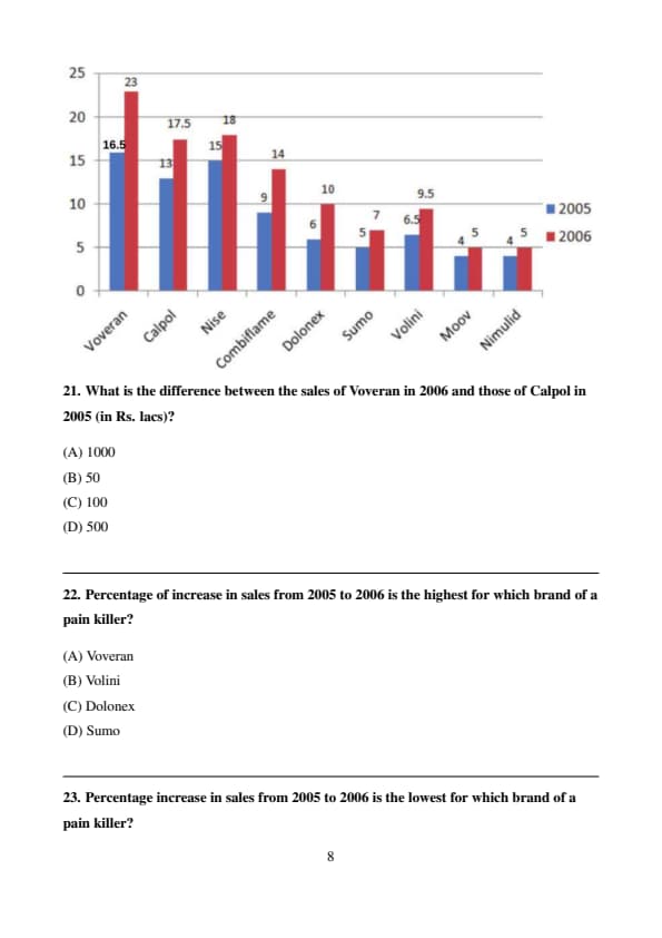 - The sales of Voveran in 2006 = 23 Crore = 2300 Lakhs.