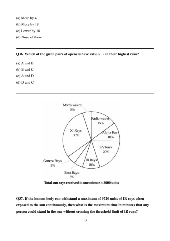 The amount of Beta rays in 10 minutes of the sun’s rays is how many times the amount of IR rays in 3 minutes of the sun’s rays?