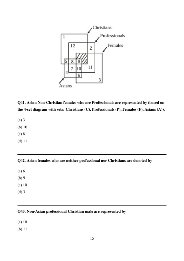 Asian Non-Christian females who are Professionals are represented by (based on the 4-set diagram with sets: Christians (C), Professionals (P), Females (F), Asians (A)).