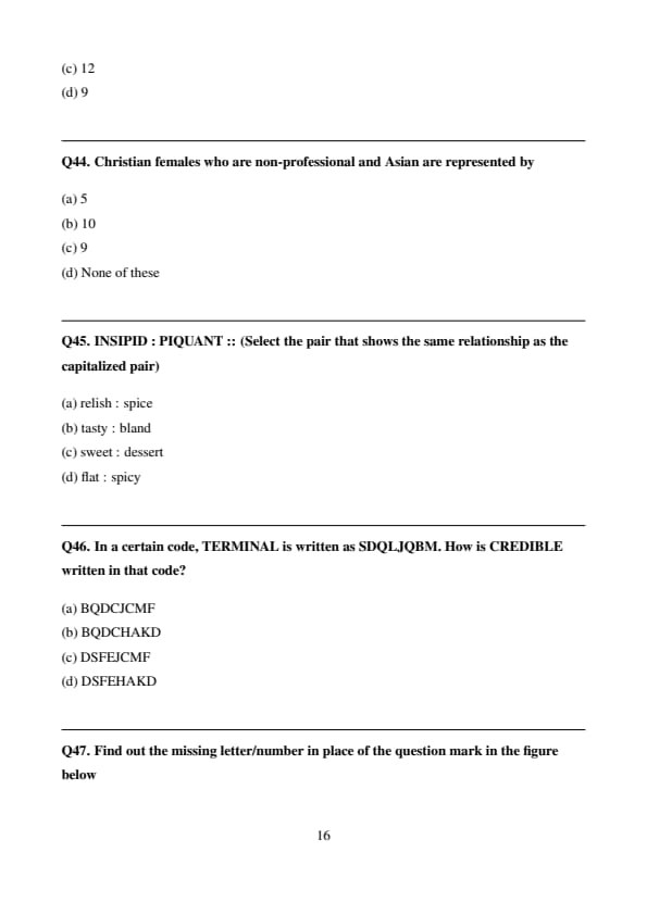 Find out the missing letter/number in place of the question mark in the figure below