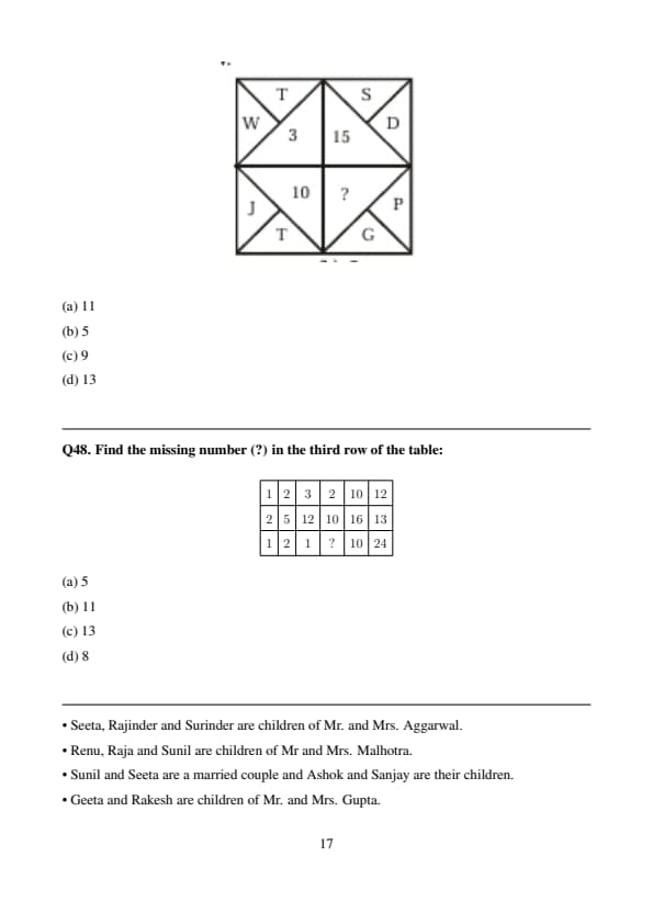 \hline 2 & 5 & 12 & 10 & 16 & 13