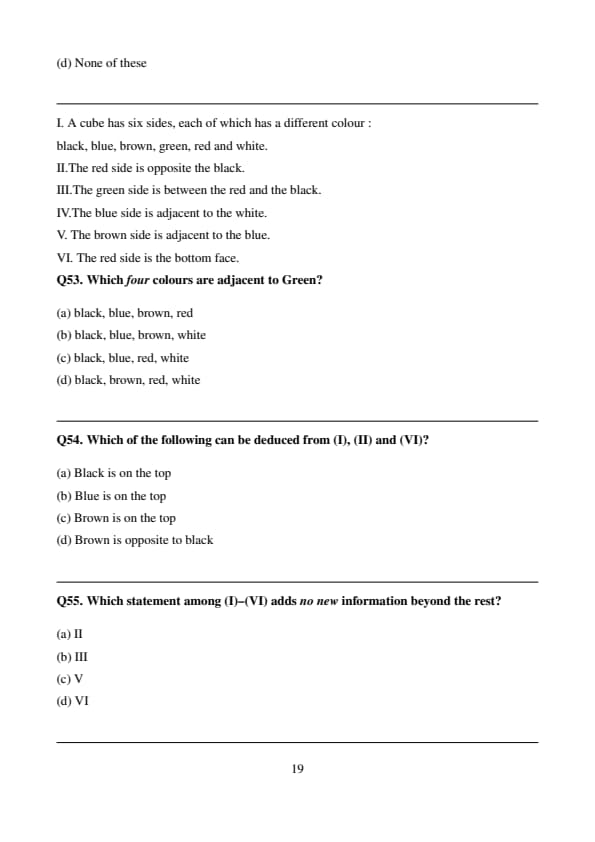 Which statement among (I)–(VI) adds no new} information beyond the rest?