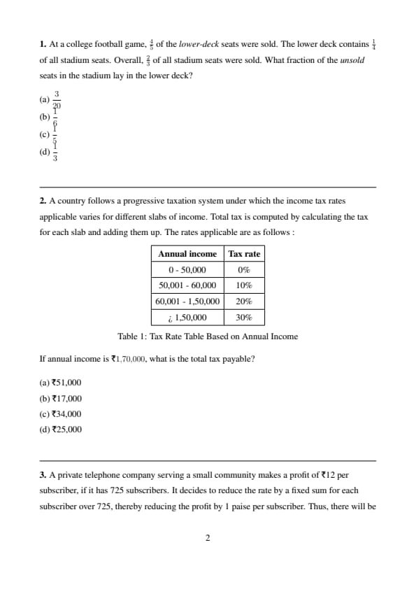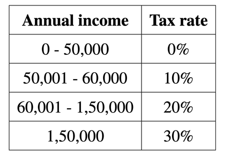 A country follows a progressive taxation system under which the income tax rates applicable varies for different slabs of income. Total tax is computed by calculating the tax for each slab and adding them up. The rates applicable are as follows :