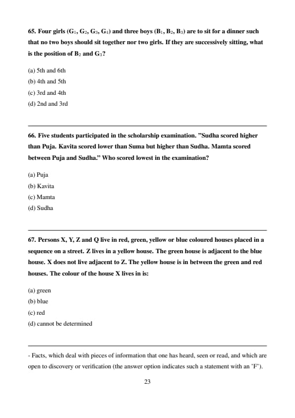 Persons X, Y, Z and Q live in red, green, yellow or blue coloured houses placed in a sequence on a street.