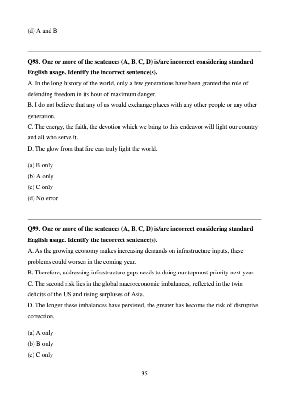 One or more of the sentences (A, B, C, D) is/are incorrect considering standard English usage. Identify the incorrect sentence(s).