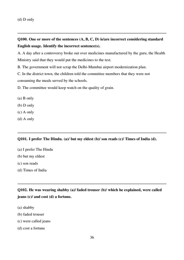 I prefer The Hindu. (a)/ but my eldest (b)/ son reads (c)/ Times of India (d).