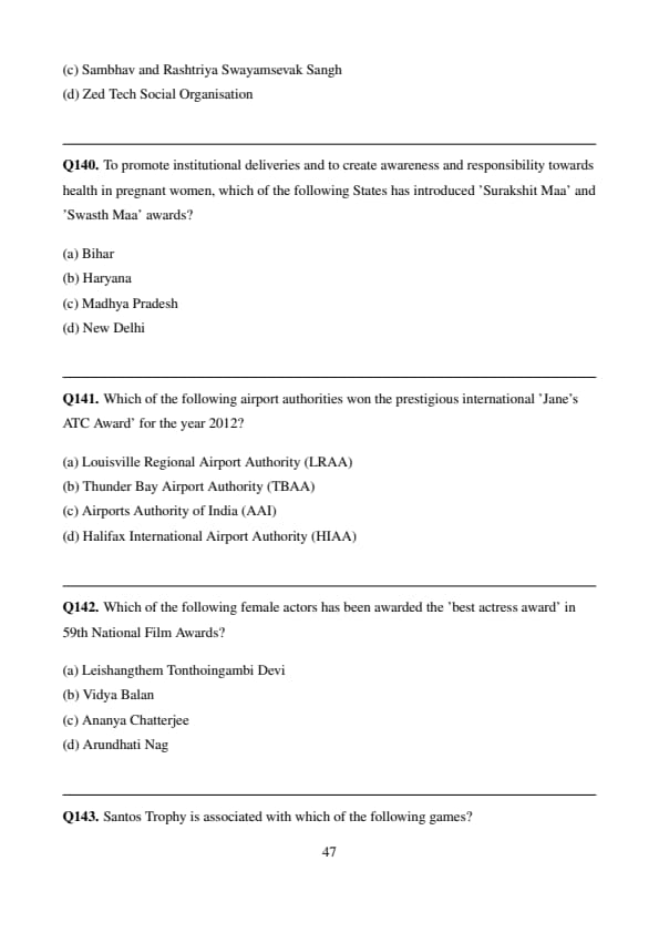 To promote institutional deliveries and to create awareness and responsibility towards health in pregnant women, which of the following States has introduced 'Surakshit Maa' and 'Swasth Maa' awards?