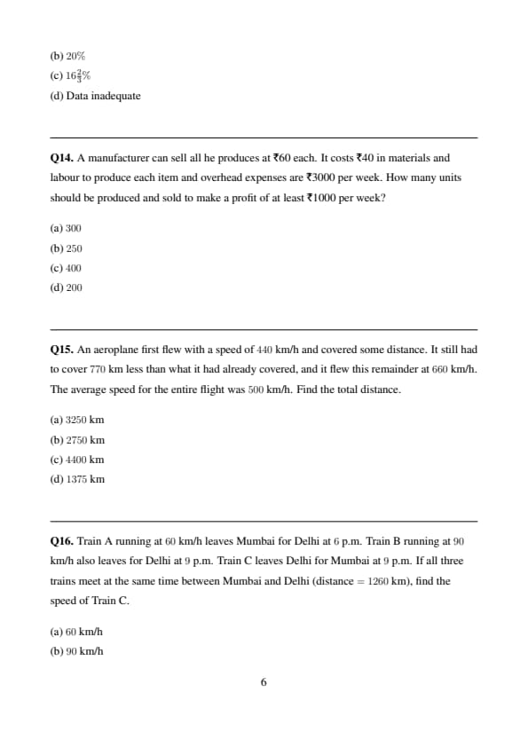 Train A running at \(60\) km/h leaves Mumbai for Delhi at \(6\) p.m. Train B running at \(90\) km/h also leaves for Delhi at \(9\) p.m. Train C leaves Delhi for Mumbai at \(9\) p.m. If all three trains meet at the same time between Mumbai and Delhi (distance \(=1260\) km), find the speed of Train C.