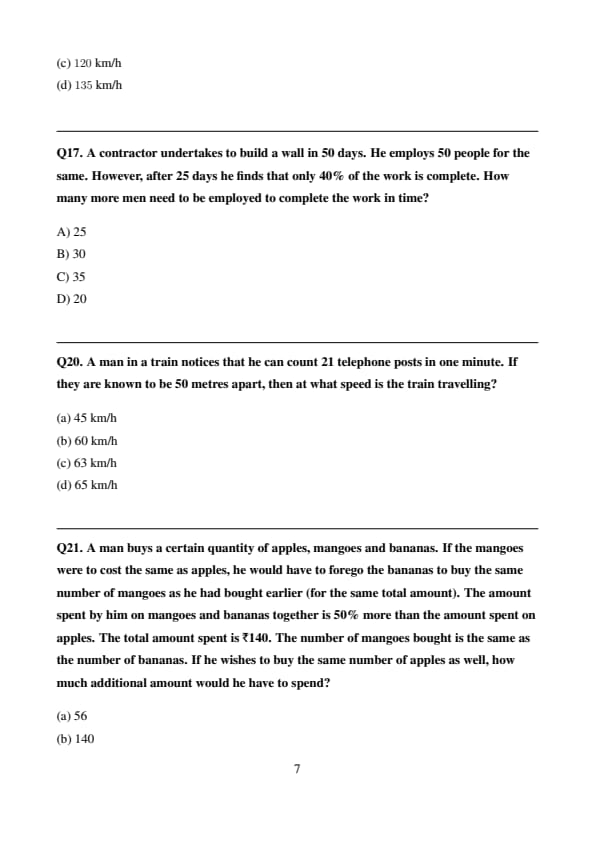 A man in a train notices that he can count 21 telephone posts in one minute. If they are known to be 50 metres apart, then at what speed is the train travelling?