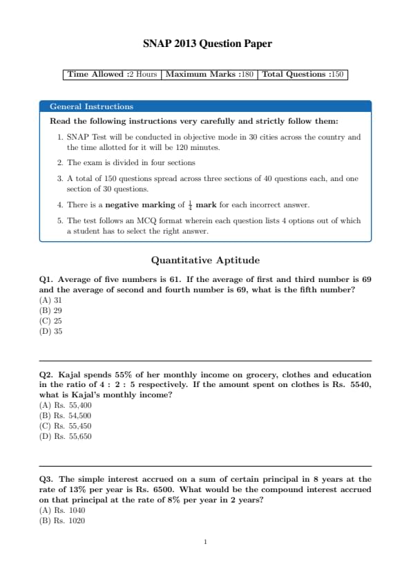 | SNAP 2013 Question Paper | Download PDF | Check Solutions |