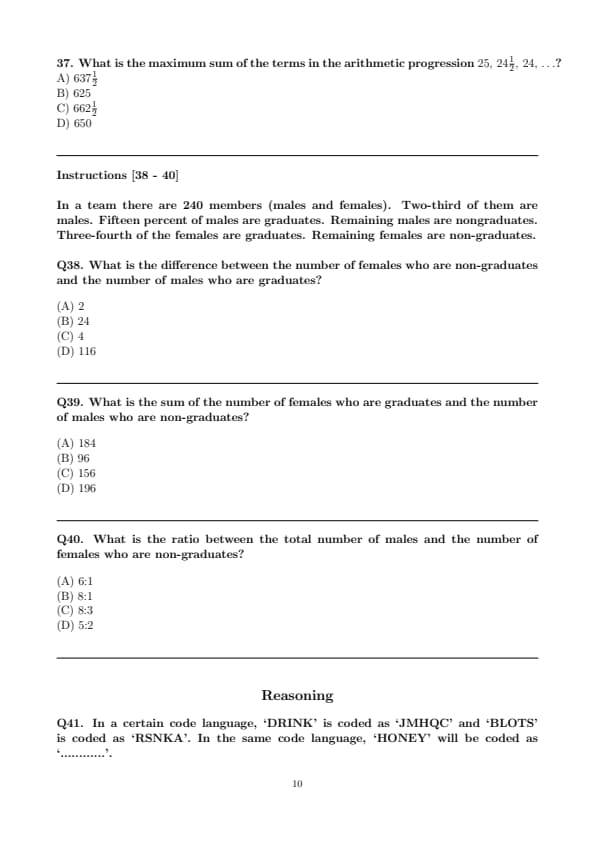 In a certain code language, ‘DRINK’ is coded as ‘JMHQC’ and ‘BLOTS’ is coded as ‘RSNKA’. In the same code language, ‘HONEY’ will be coded as ‘............’.