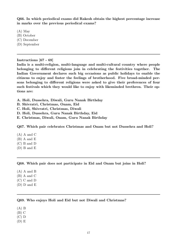 Which pair celebrates Christmas and Onam but not Dussehra and Holi?