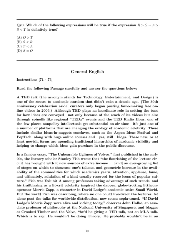 Which of the following expressions will be true if the expression \( R > O = A > S < T \) is definitely true?