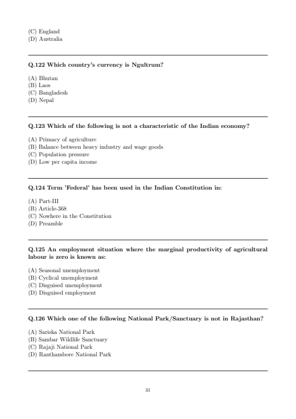 An employment situation where the marginal productivity of agricultural labour is zero is known as: