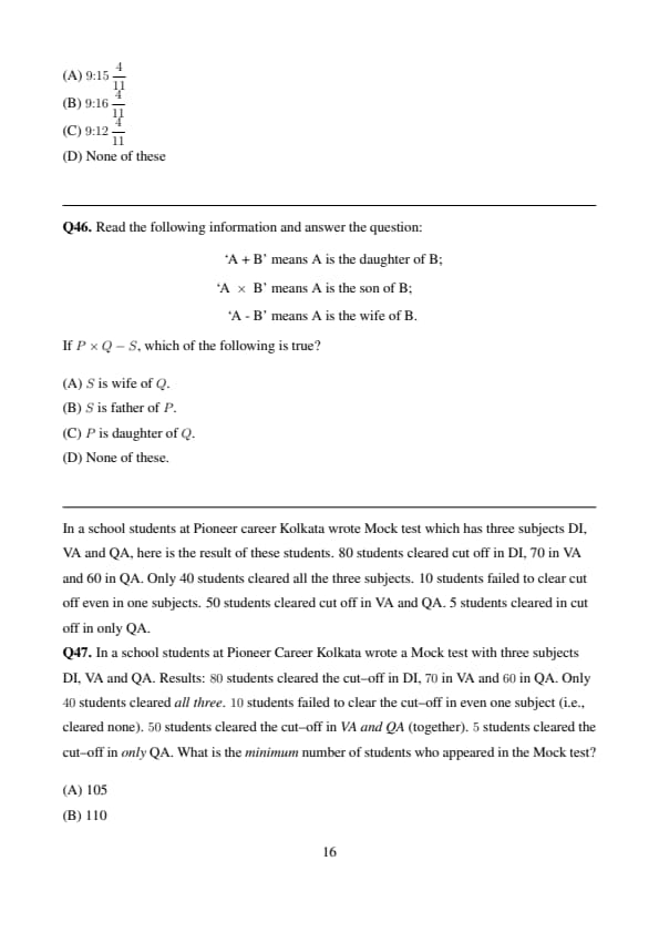 ‘A - B’ means & A is the wife of B. \end{aligned} \]