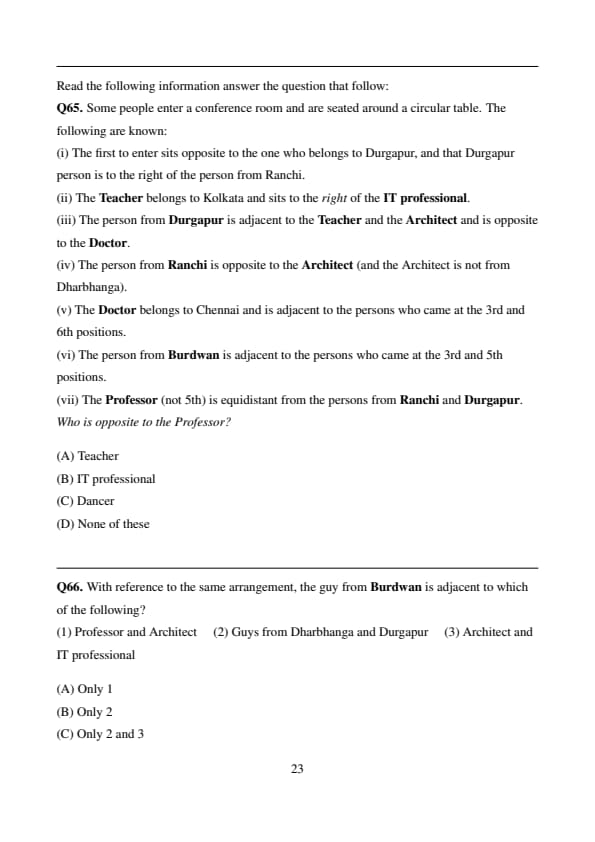 (i) The first to enter sits opposite to the one who belongs to Durgapur, and that Durgapur person is to the right of the person from Ranchi.