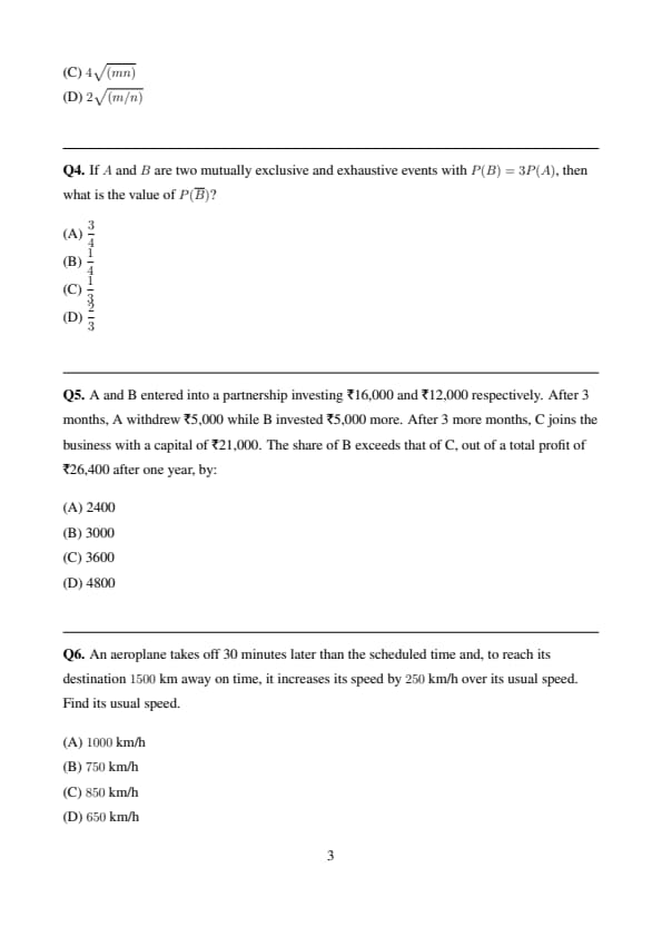 If \(A\) and \(B\) are two mutually exclusive and exhaustive events with \(P(B)=3P(A)\), then what is the value of \(P(\overline{B})\)?