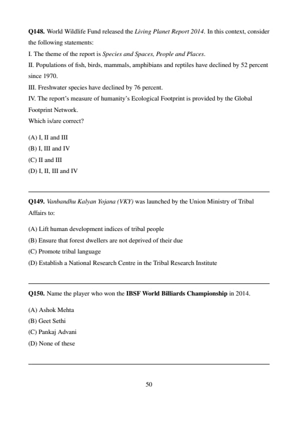 World Wildlife Fund released the Living Planet Report 2014. In this context, consider the following statements: