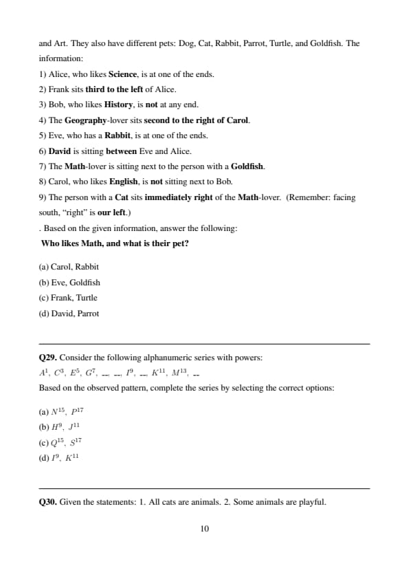 9) The person with a Cat sits immediately right of the Math-lover. \ (Remember: facing south, “right” is our left.)