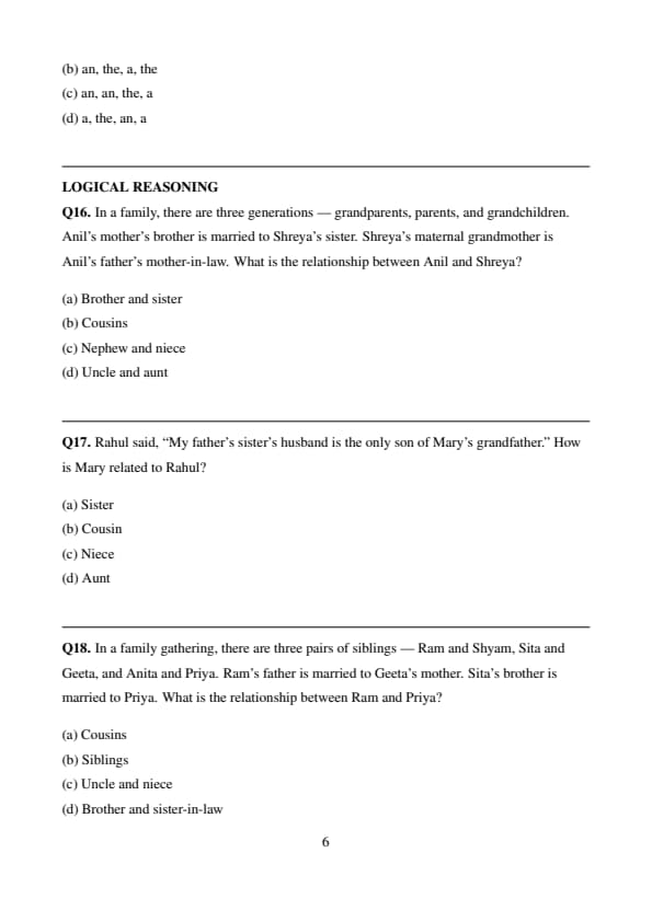 In a family, there are three generations — grandparents, parents, and grandchildren. Anil's mother's brother is married to Shreya's sister. Shreya's maternal grandmother is Anil's father's mother-in-law. What is the relationship between Anil and Shreya?