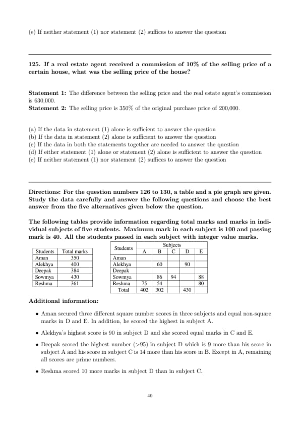 From the table, Aman’s score in subject D is provided directly as 78. Hence the correct answer is \( \boxed{78} \). Quick Tip: Always refer to the table provided for straightforward information.