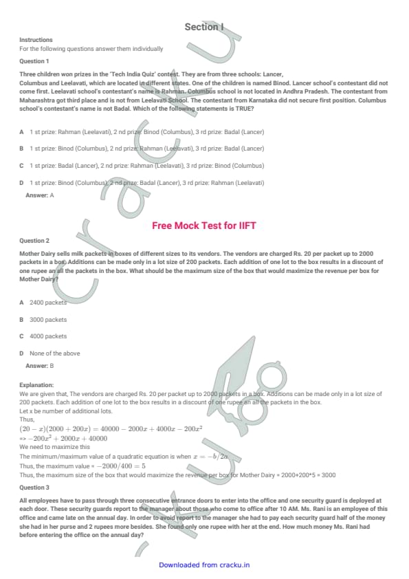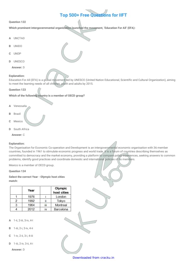 IIFT 2008 Question Paper with Answer Key PDFs
