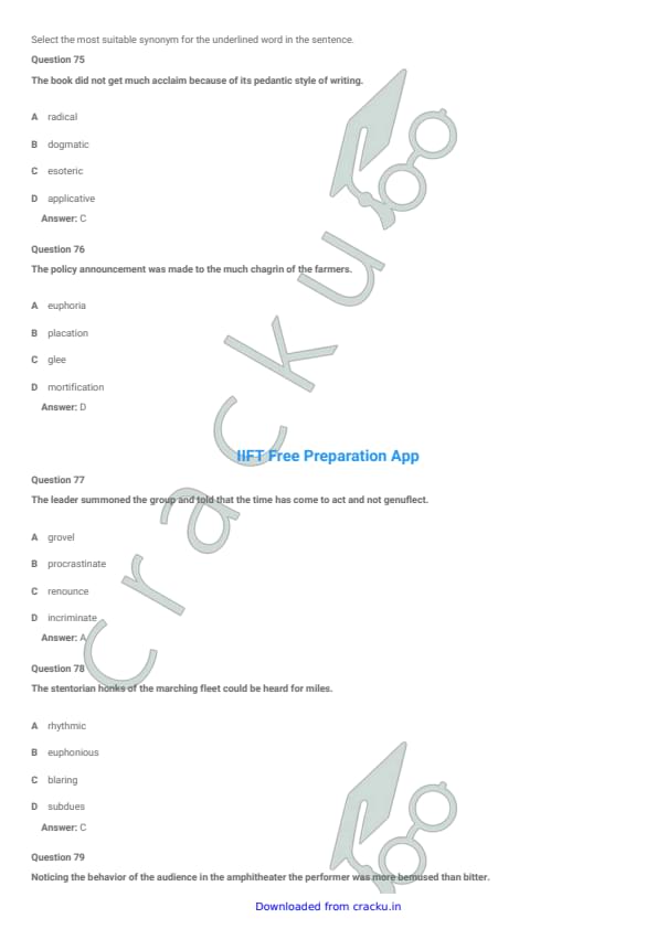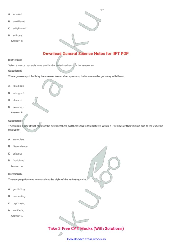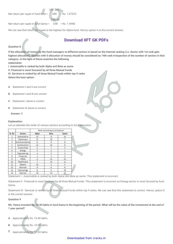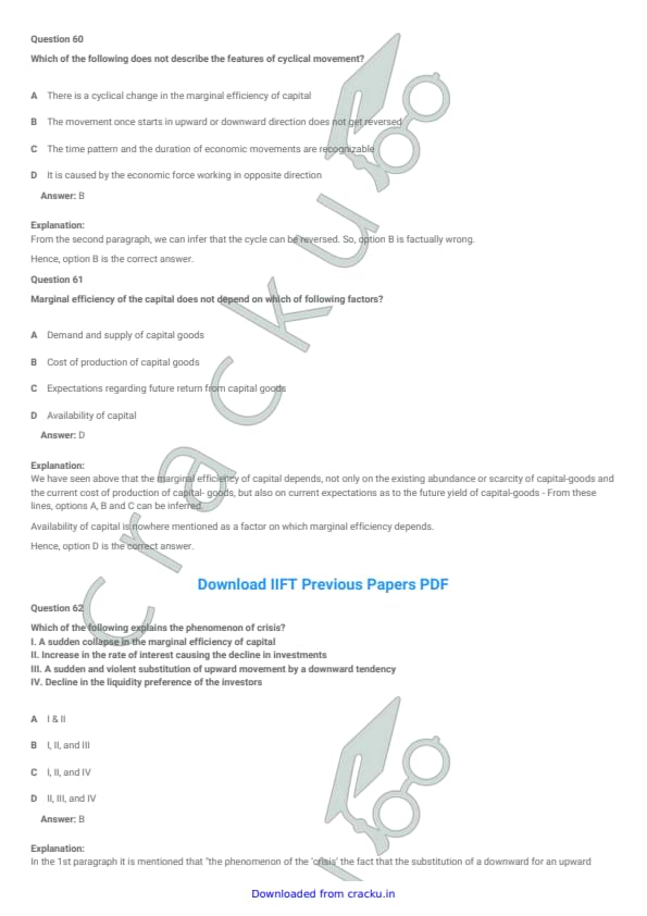 IIFT 2009 Question paper with answer key pdf is available for download. The exam was successfully organized by Indian Institute of Foreign Trade, New Delhi (IIFT). The question paper comprised a total of 122 questions. [PDF Source: cracku.in]