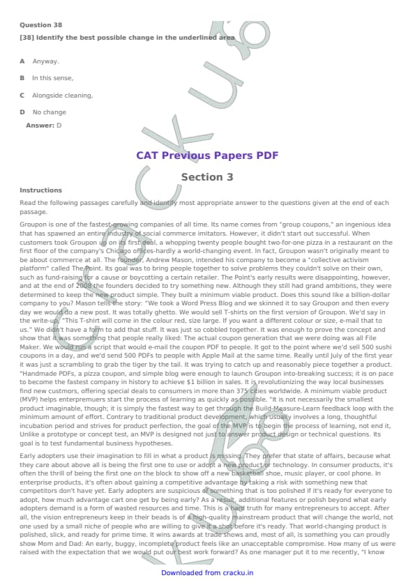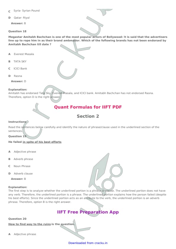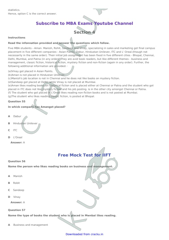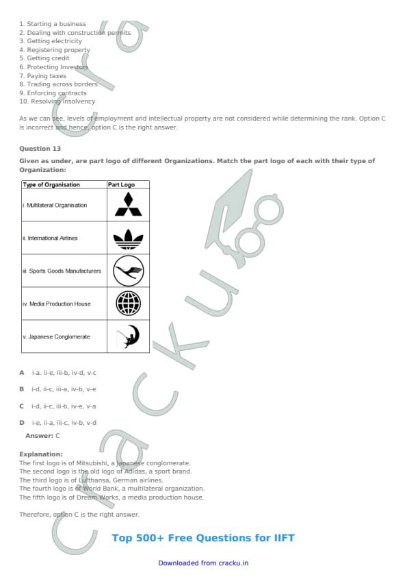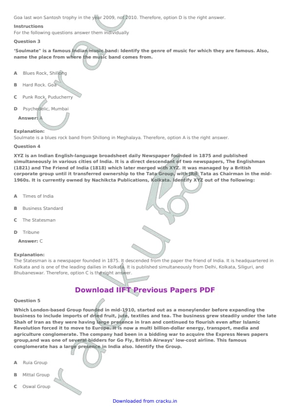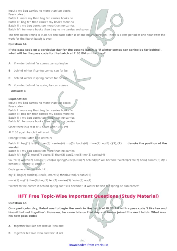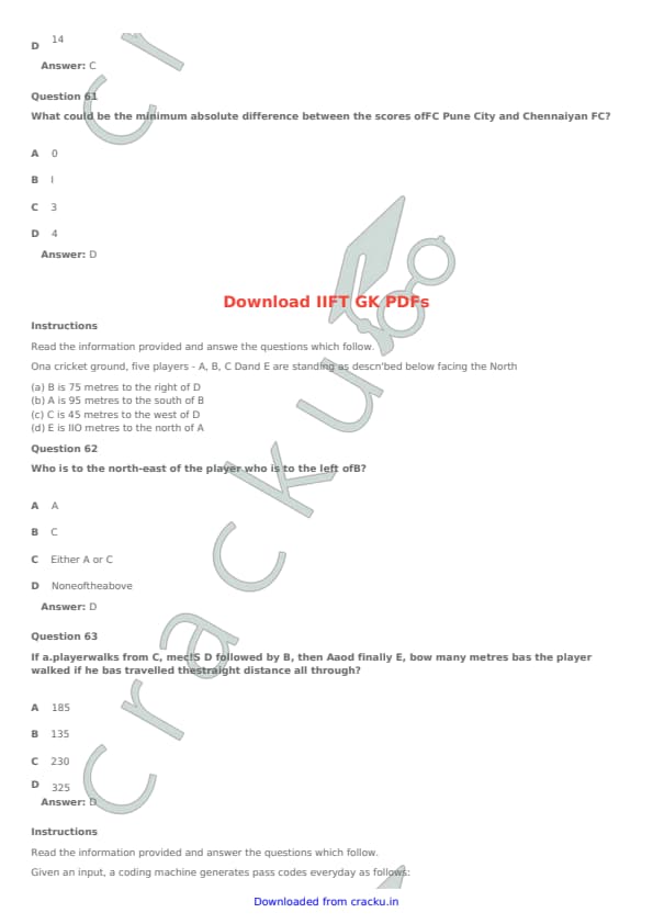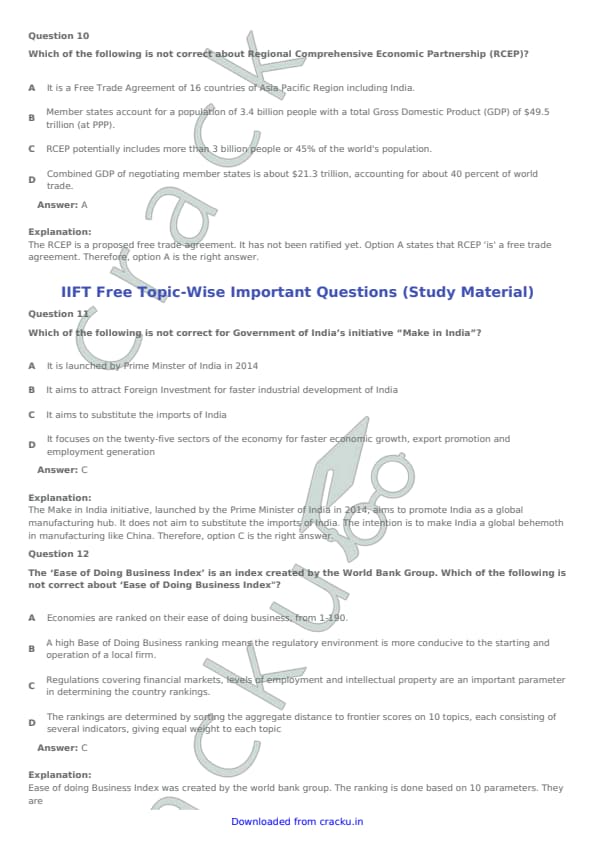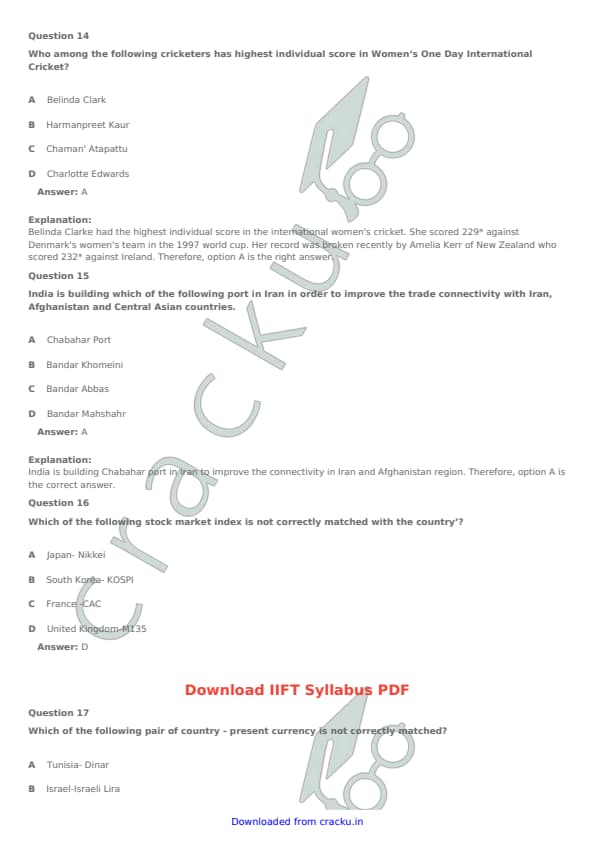 IIFT 2017 Question paper with answer key pdf conducted on November 27, 2016 is available for download. The exam was successfully organized by Indian Institute of Foreign Trade, New Delhi (IIFT). The question paper comprised a total of 114 questions. [PDF Source: cracku.in]