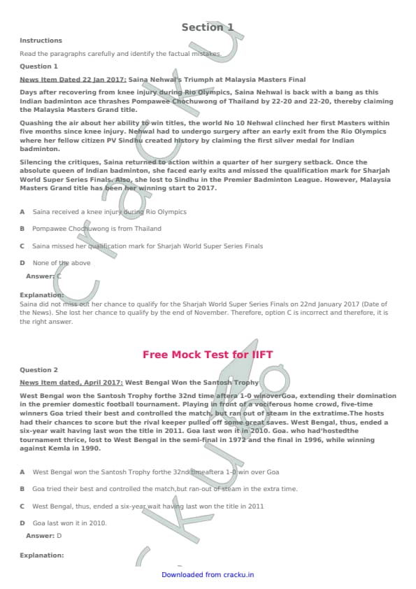 IIFT 2017 Question Paper with Answer Key PDFs
