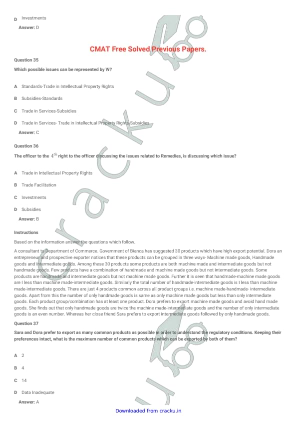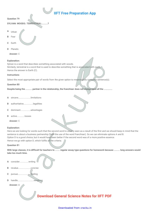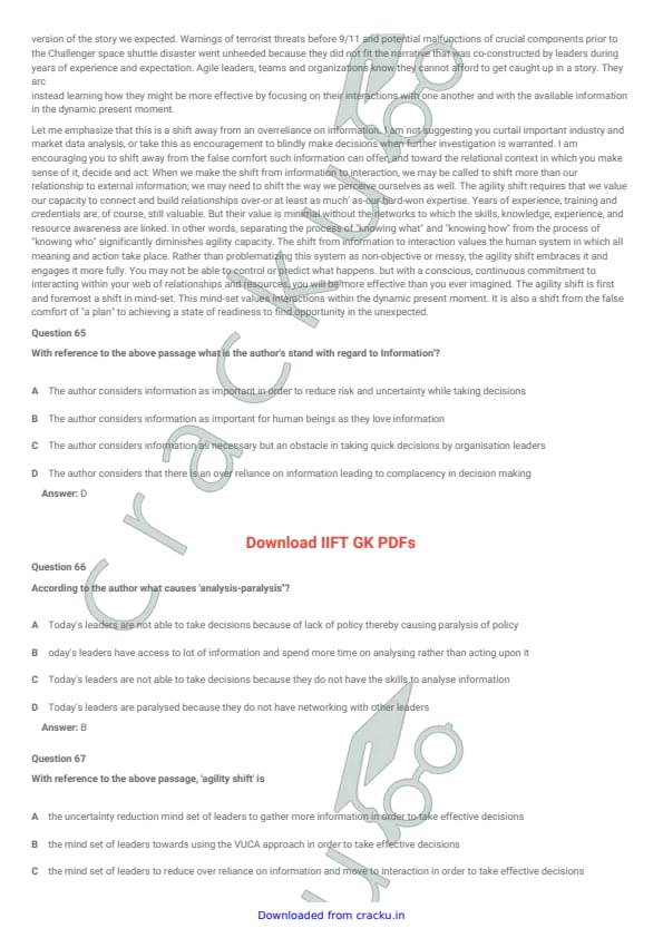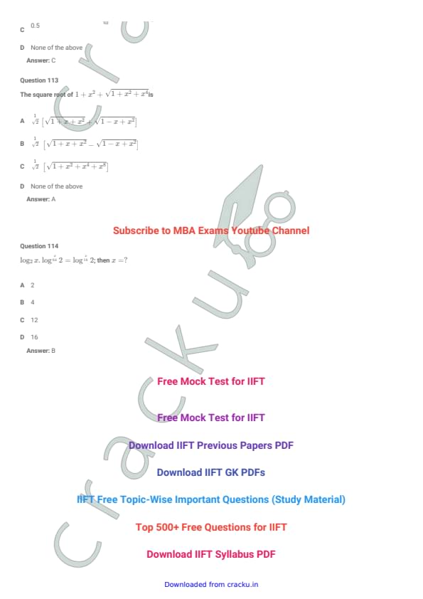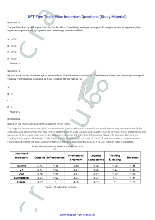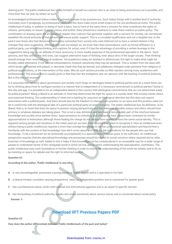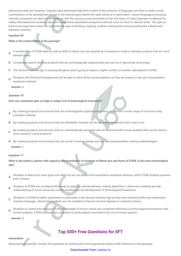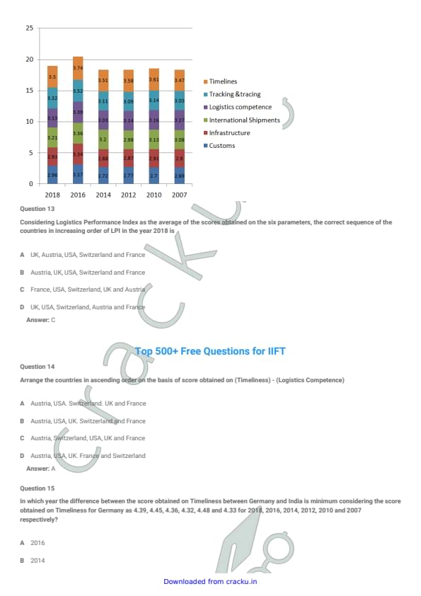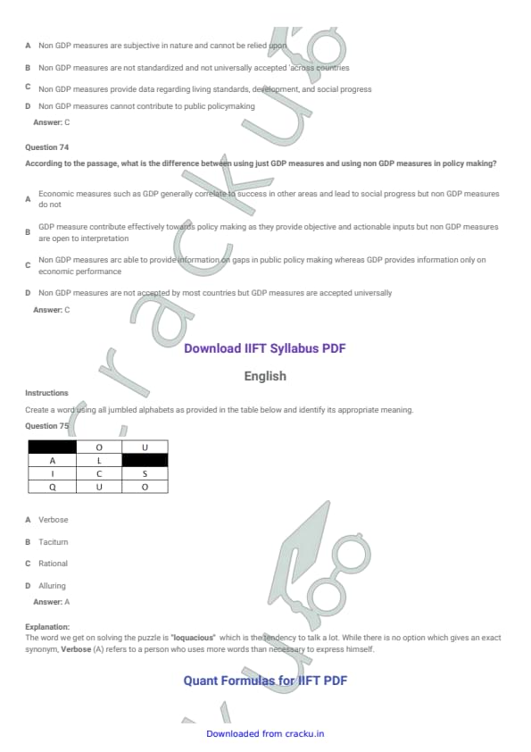 IIFT 2018 Question paper with answer key pdf conducted on December 3, 2017 is available for download. The exam was successfully organized by Indian Institute of Foreign Trade, New Delhi (IIFT). The question paper comprised a total of 114 questions divided among six sections.[PDF Source: cracku.in]