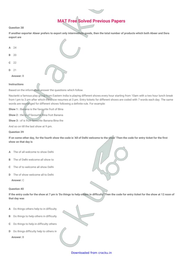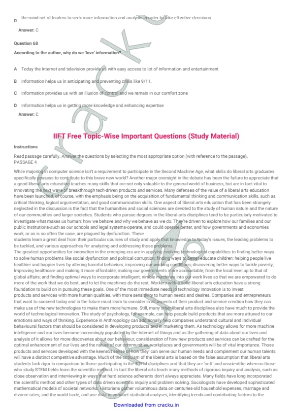 IIFT 2018 Question Paper with Answer Key PDFs