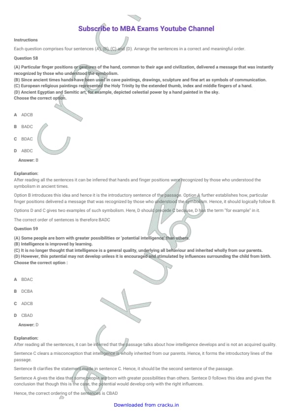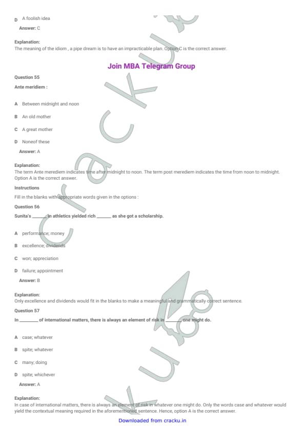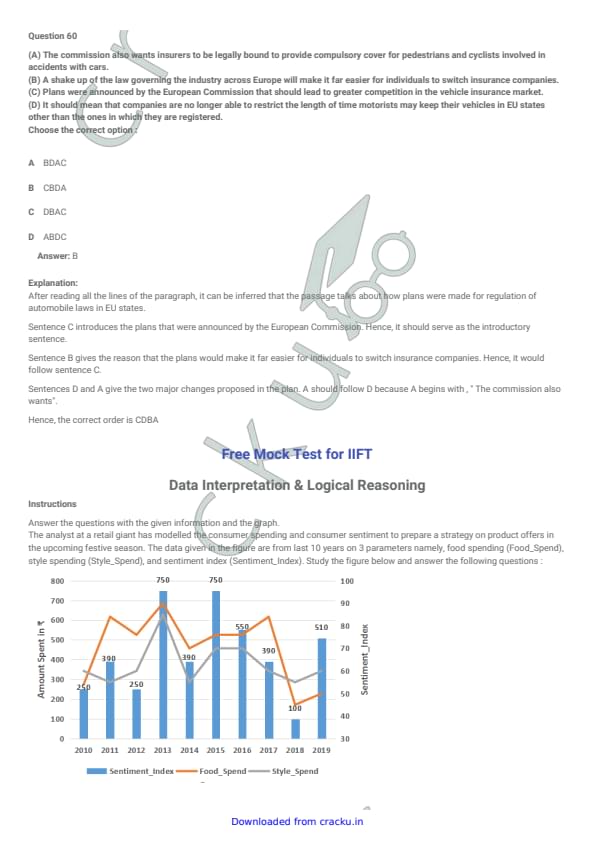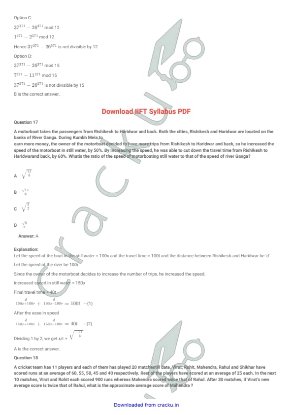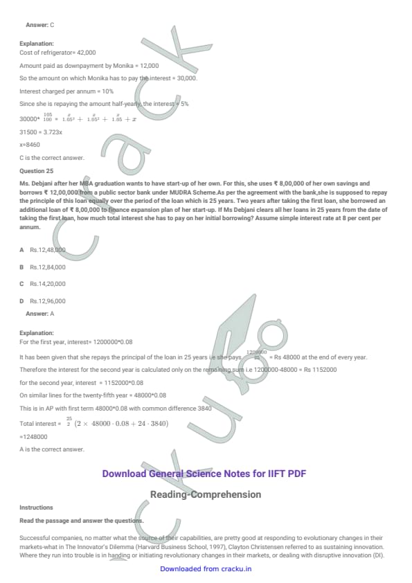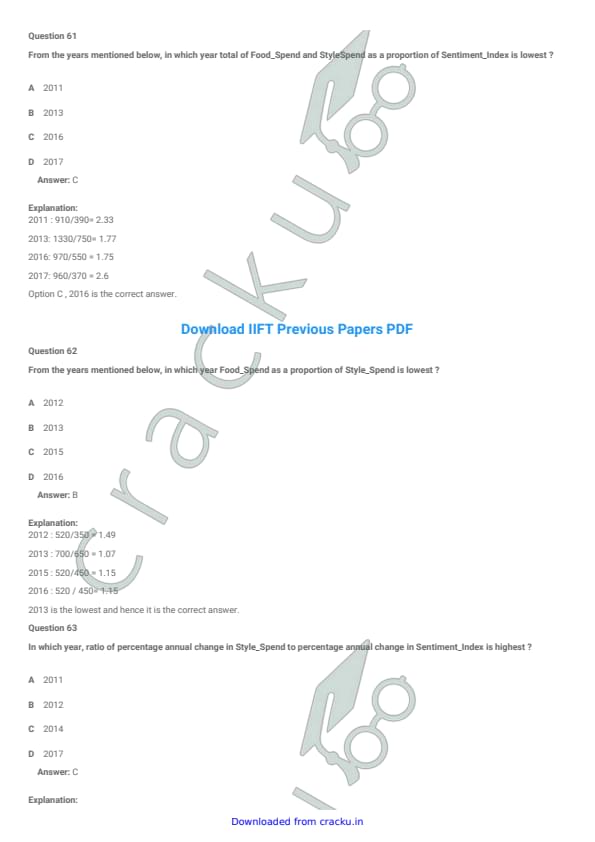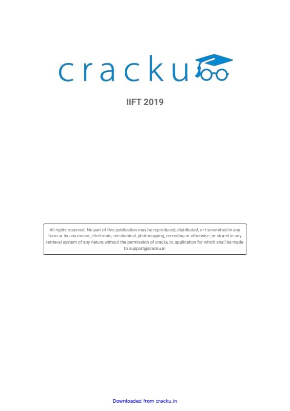 IIFT 2019 Question paper with answer key pdf conducted on December 2, 2018 is available for download. The exam was successfully organized by National Testing Agency (NTA). The question paper comprised a total of 110 questions divided among four sections.[PDF Source: cracku.in]