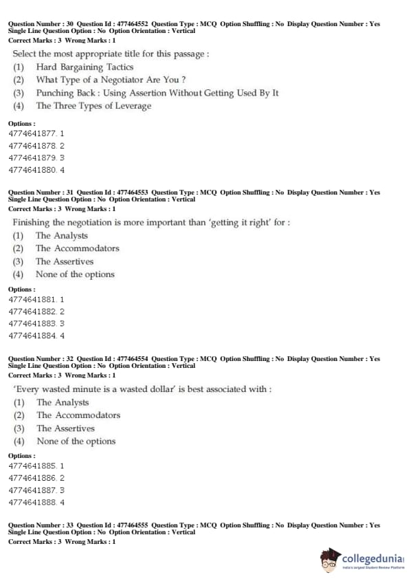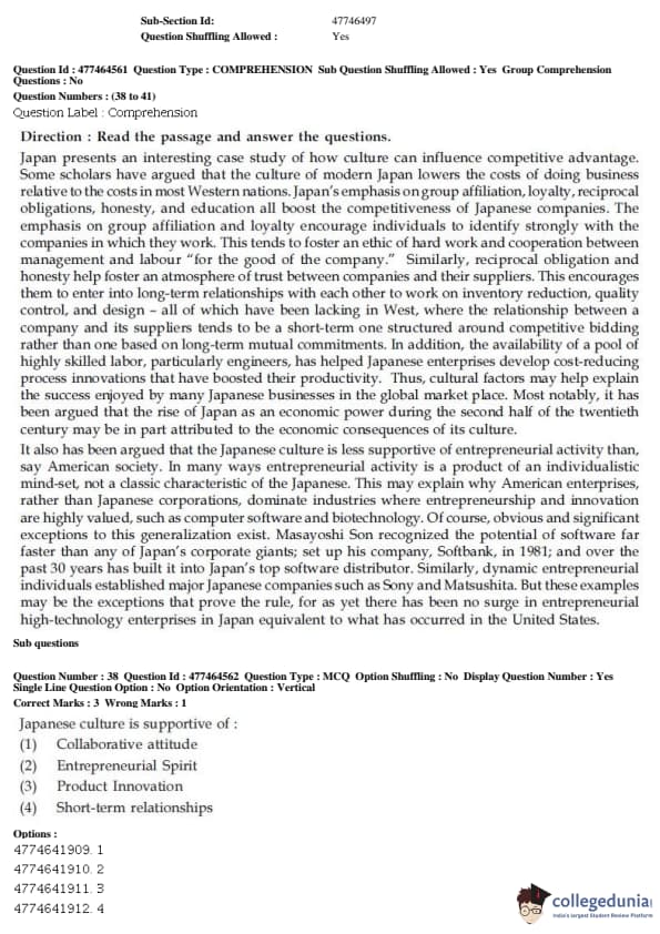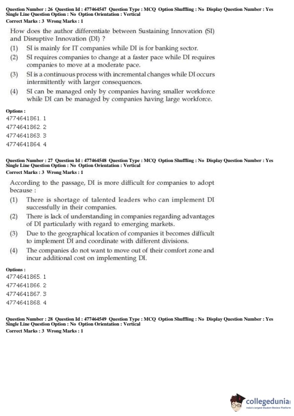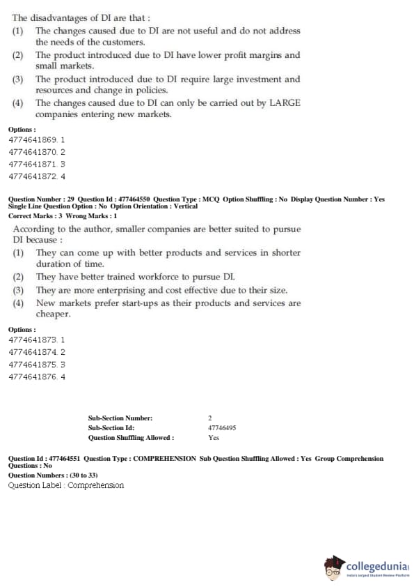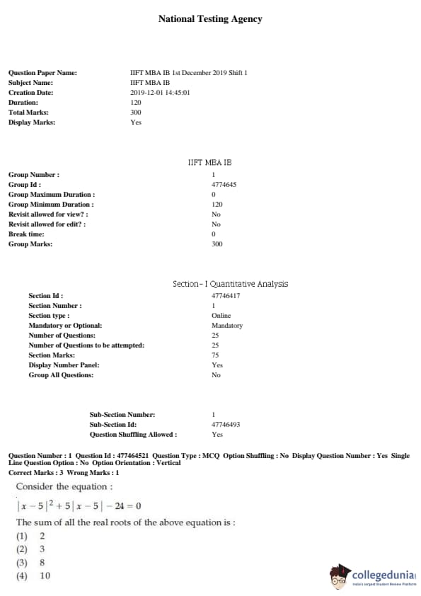 IIFT 2020 Question paper with answer key pdf conducted on December 1, 2019 is available for download. The exam was successfully organized by National Testing Agency (NTA). The question paper comprised a total of 110 questions divided among four sections.