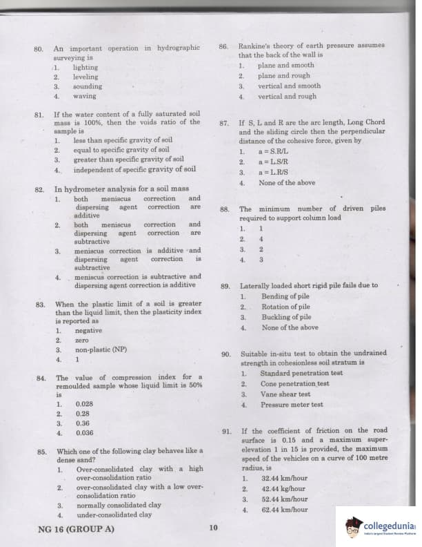 TANCET 2016 Civil Engineering Question Paper with Answer Key PDFs