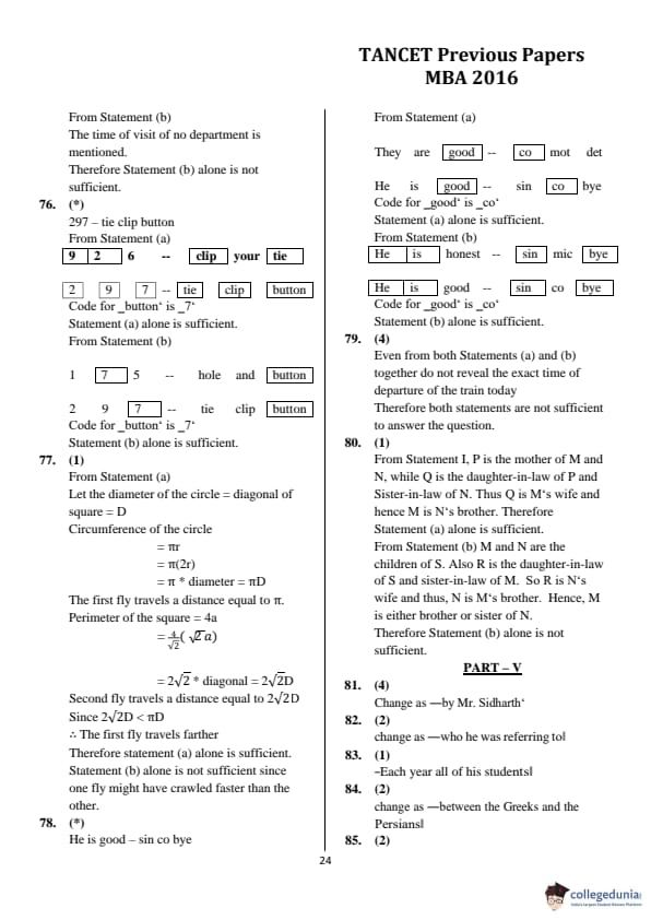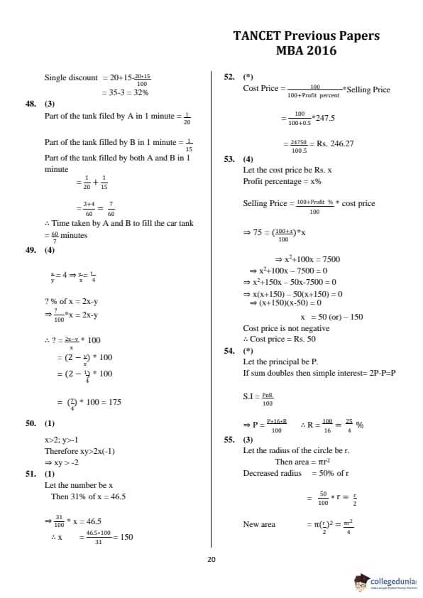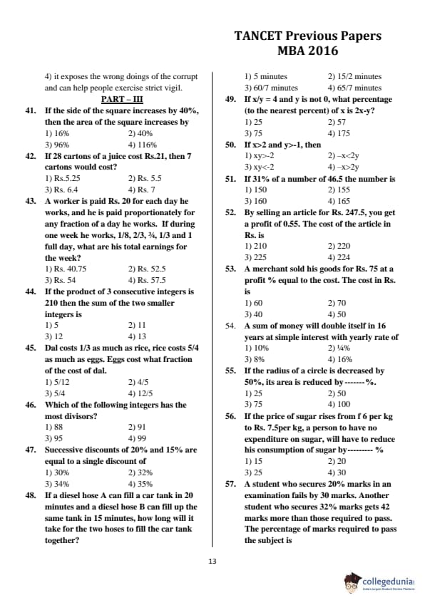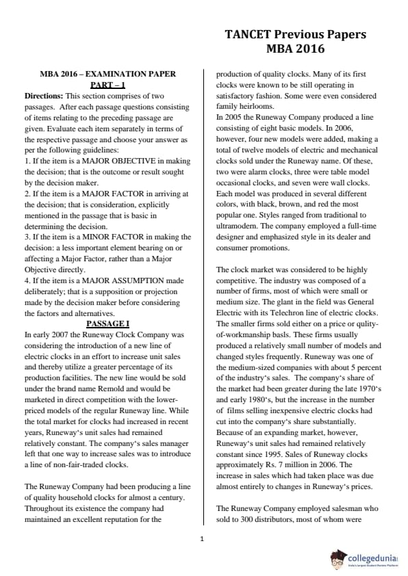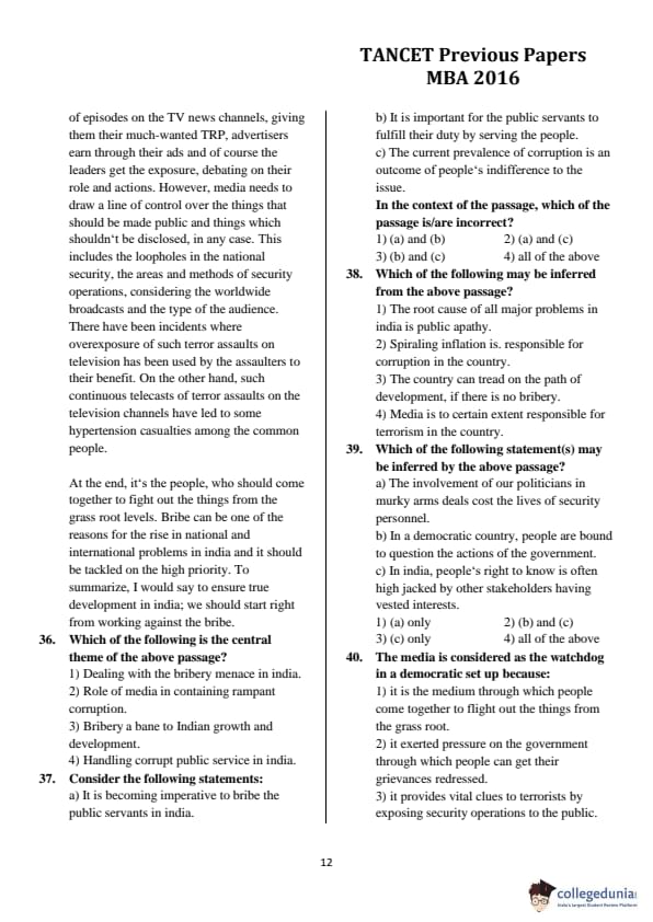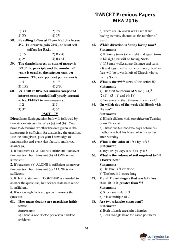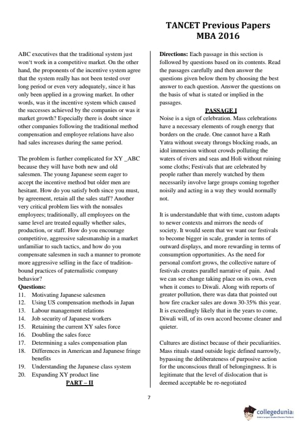 | TANCET 2016 MBA Question Paper PDF | TANCET 2016 MBA Answer Key PDF |