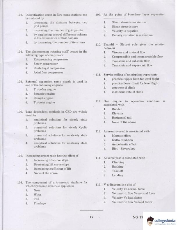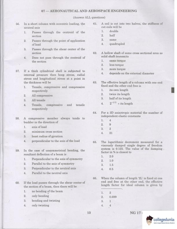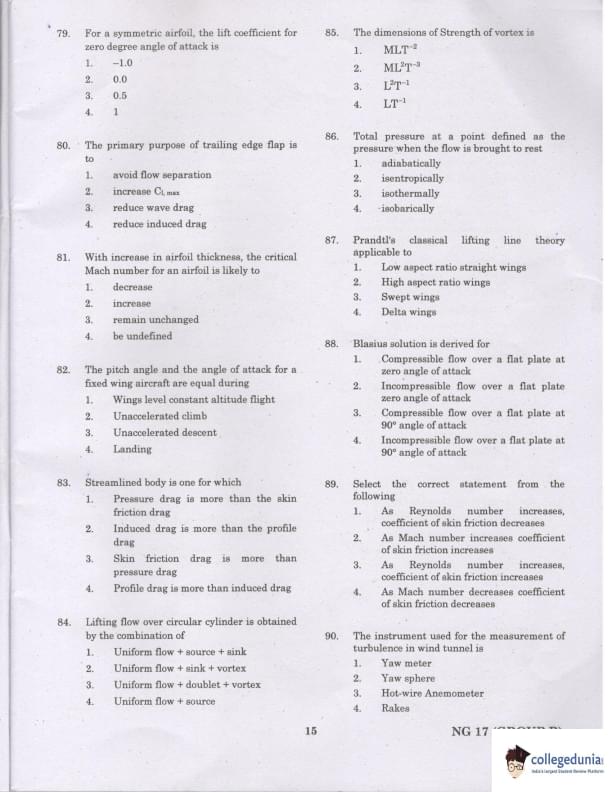 TANCET 2017 Aeronautical & Aerospace Engineering Question Paper with Answer Key PDFs