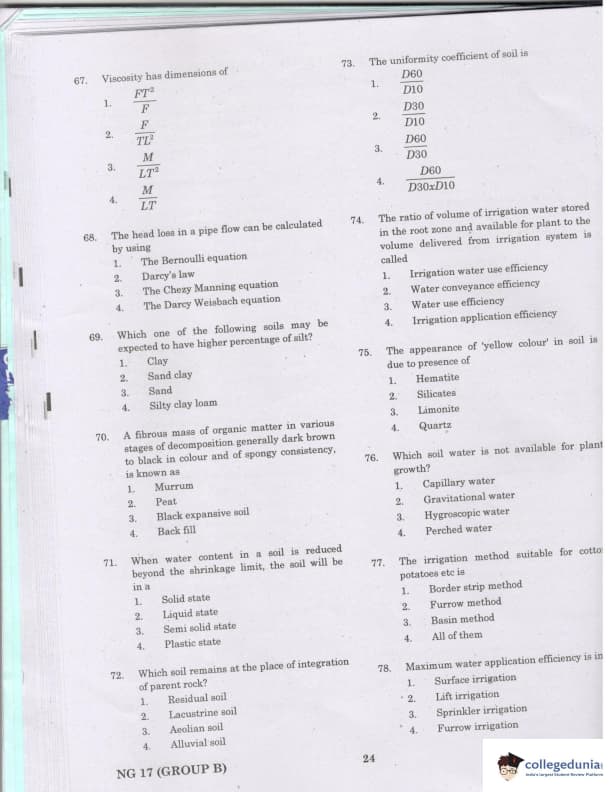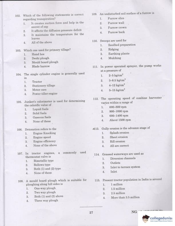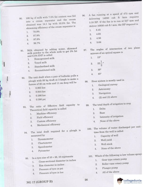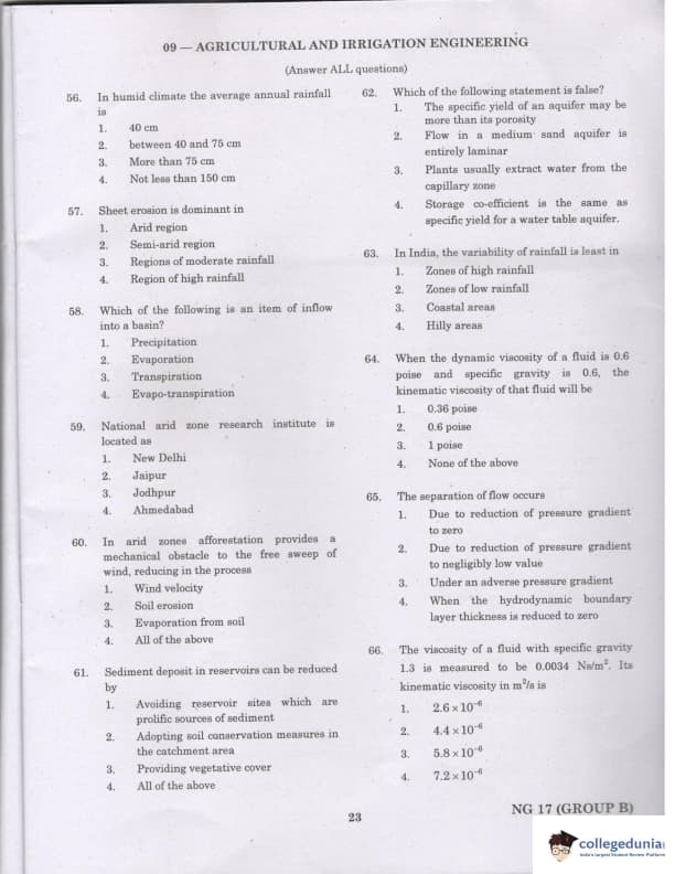TANCET 2017 Agricultural & Irrigation Engineering Question paper with answer key pdf conducted on March 26, 2017 is available for download. The exam was successfully organized by ANNA University. The question paper comprised a total of 60 questions.