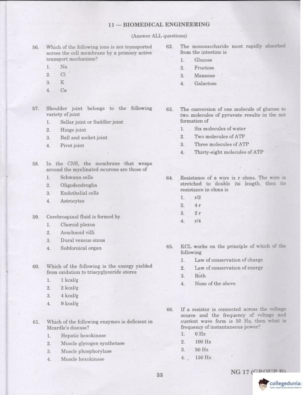 | TANCET 2017 Biomedical Engineering Question Paper PDF | TANCET 2017 Biomedical Engineering Answer Key PDF |