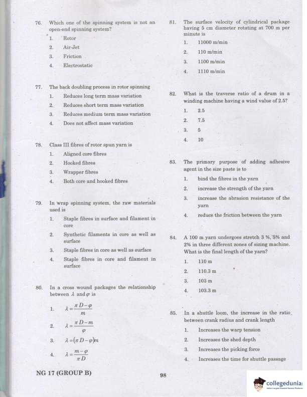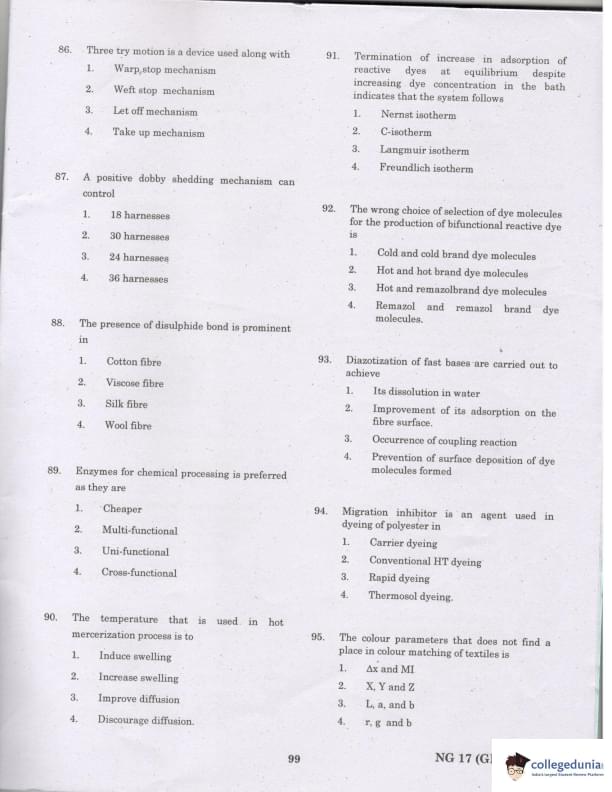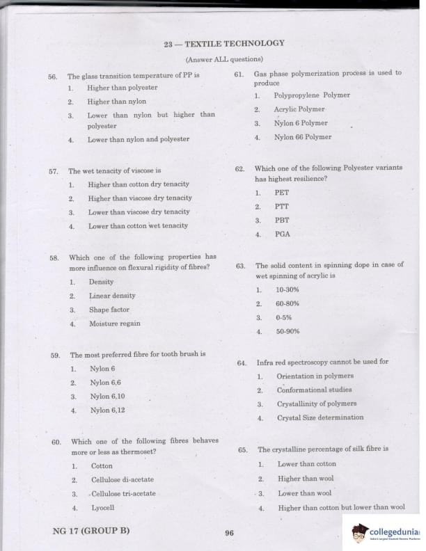 TANCET 2017 Textile Technology Question Paper with Answer Key PDFs